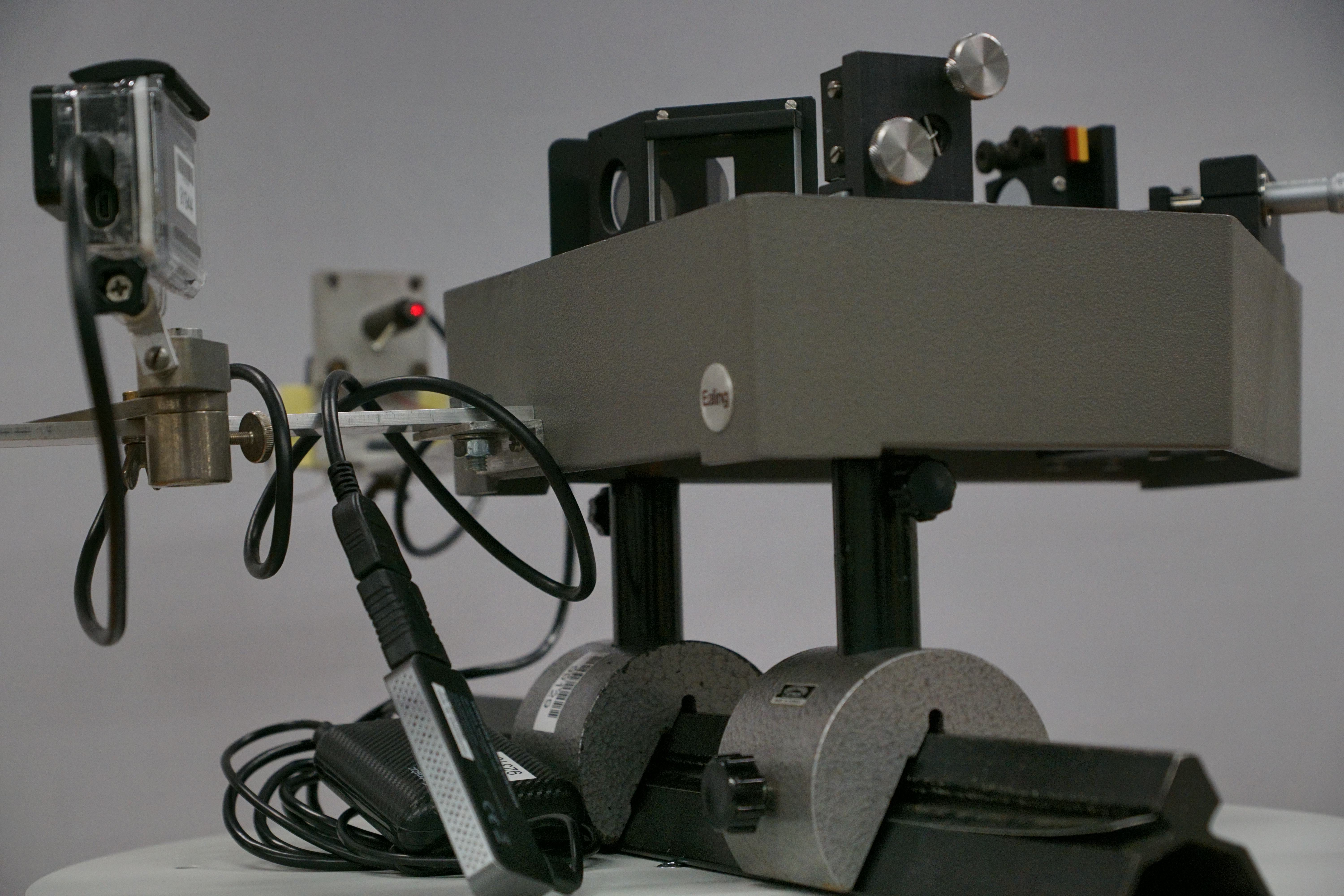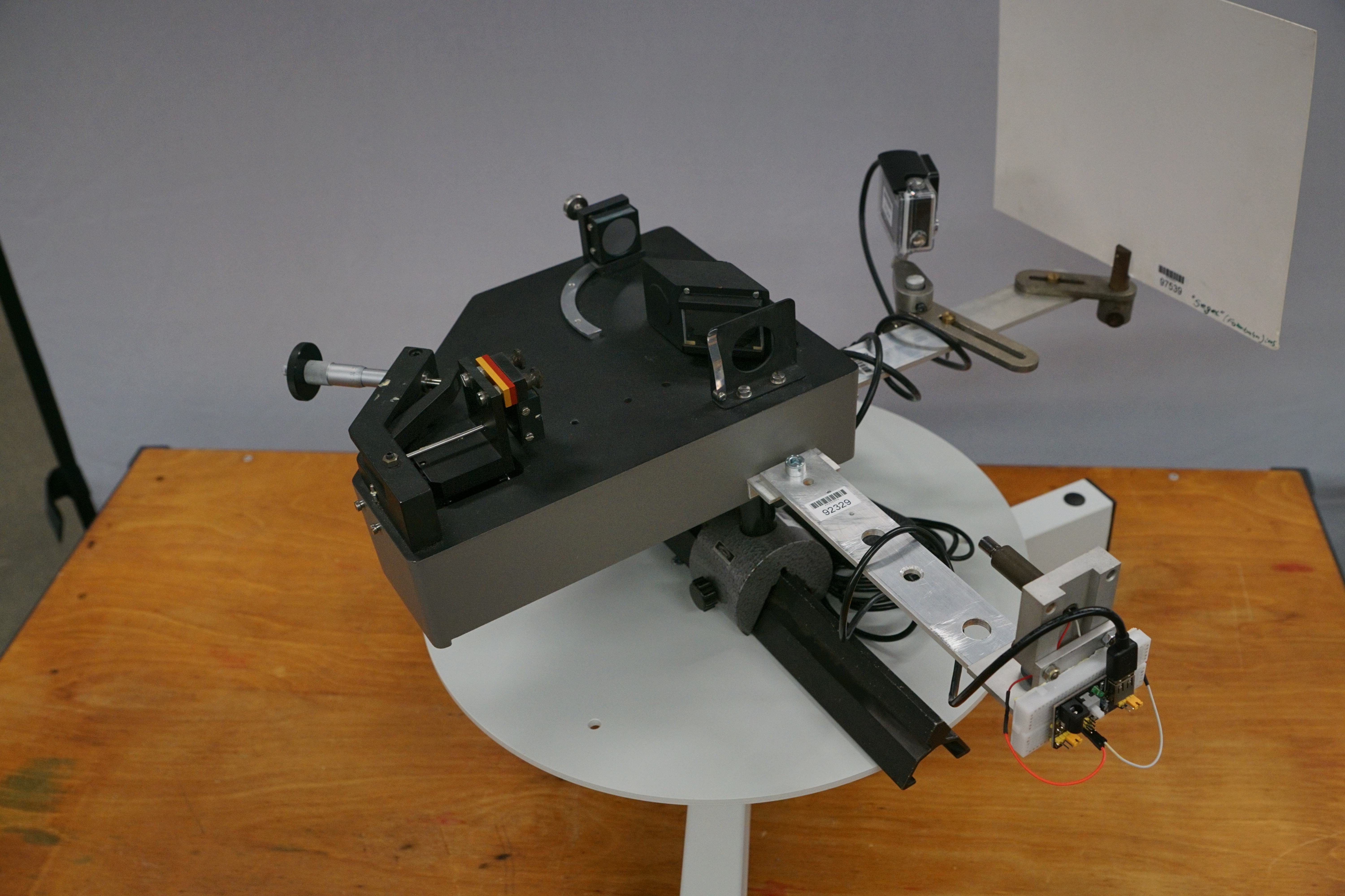 Bei diesem Versuch handelt es sich um ein Michelson Interferometer, dass auf einem Drehtisch montiert ist.